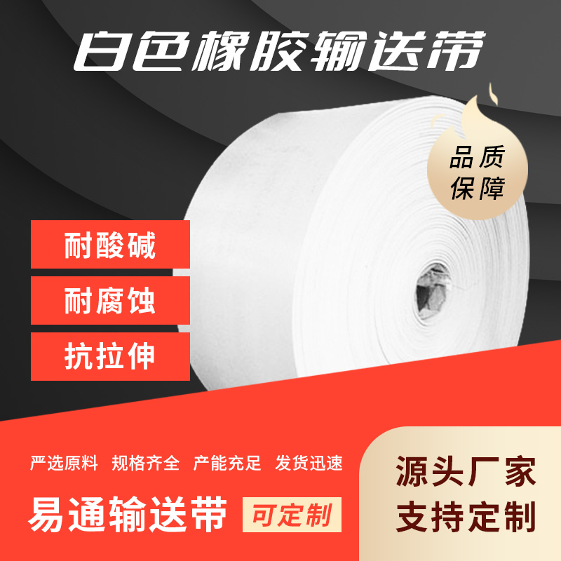 白色橡膠輸送帶無塵、衛(wèi)生,符合美國FDA食品衛(wèi)生標(biāo)準(zhǔn),適用于對衛(wèi)生要求高的食品加工行業(yè)。